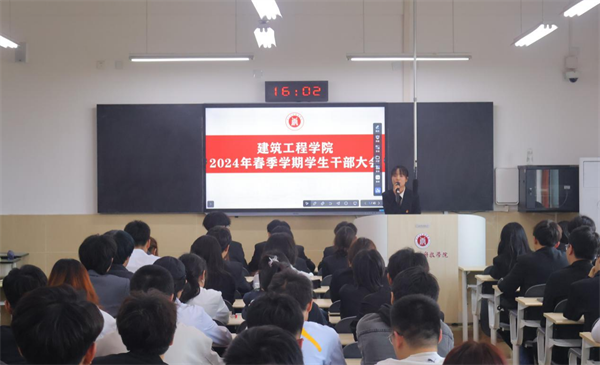 4月11日下午,建筑工程学院团总支在龑江学村D305教室组织召开2024年春季学期学生干部大会,团总支书记李美玲出席会议并发表讲话,学院团总支学生会全体学生干部、各班级主要班团干部参加。