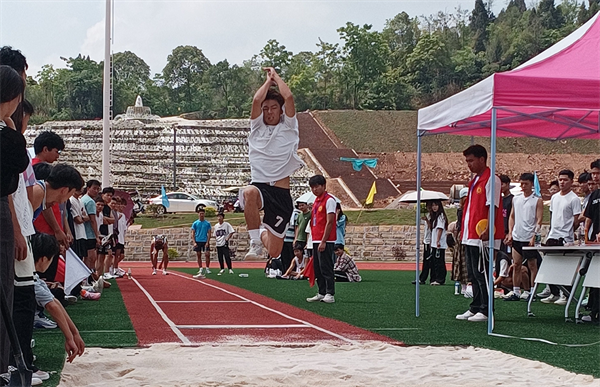 男子立定跳远决赛场上,学院23级电信02班学生杜浩以霸气之姿刷新了学校该项目的历史最佳成绩,勇夺冠军。