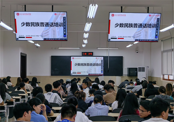 4月26日,由四川工业科技学院语言文字工作委员会办公室主办、大学生语言文字推广中心承办的少数民族普通话培训会在龑江学村D305教室举行。全校187名少数民族学生参加此次培训。