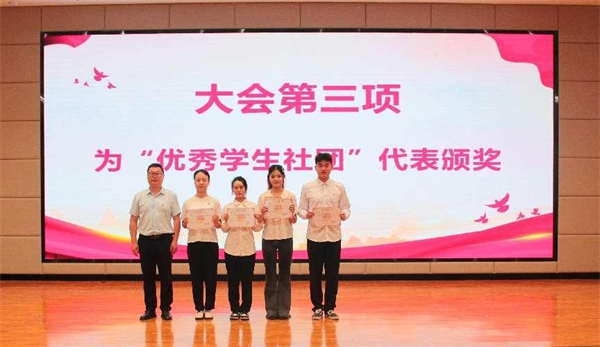校团委书记谭玲宣读表彰决定。与会领导为获得荣誉的先进集体和先进个人颁发了奖牌和荣誉证书。