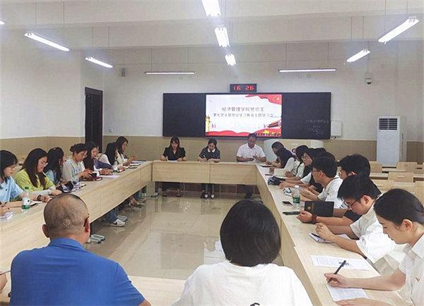近日,经济管理学院党总支党纪学习教育集中学习会在龑江学村B412室召开,学院党总支副书记、党总支委员、各党支部书记和师生党员代表参加会议,本次会议由经济管理学院党总支组织委员、第七支部书记魏欢同志主持。