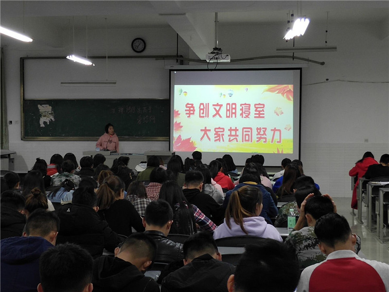 体育学院体育指导与管理专业16级一、二、三、四班以及17级一、二、三班的学生,于3月18日晚19:00在毓秀406教室举办了“争创文明寝室”的主题班会。