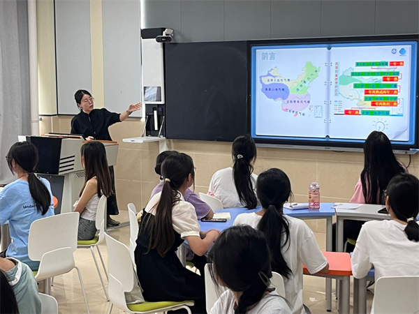活动现场,蔡嘉婧播放了科普视频,介绍了三星堆的地理位置、世界气候类型和我国气候类型,激发了同学们对三星堆文明背后气象密码的兴趣。