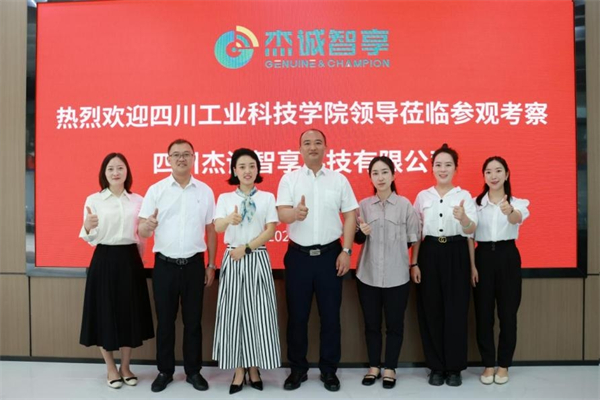 上午,杨朋一行走访了四川杰诚智享科技有限公司和若光集团,了解了公司的企业文化、工作环境以及技术研发等情况,随后与企业负责人开展座谈交流。杰诚智享基于互联网人工智能、大数据技术及云平台,依托一个品牌数字化运营服务平台、线上线下双向服务通道,通过四步法(品牌打造、线下业务线上化、一切业务数据化、一切数据业务化),为中小企业提供一站式品牌数字化运营服务。紧接着,杨朋也介绍了学校的发展历程、专业设置与在校生总数,以及经济管理学院大数据、财务专业板块与学生数量以及目前学院的产教融合工作情况。