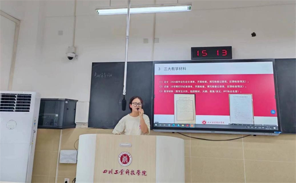 学院综合办副主任周洪婷针对本科教学合格评估工作从专家案头材料、院级评建工作归档材料和三大教学材料三个方面进行了详细部署,并对具体要求进行了讲解。
