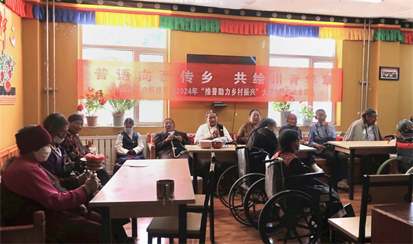 8月12日,学校“普音盛夏,相遇青海”志愿团队踏上了前往玉树新寨慈善敬老院的征途,开展了一场意义非凡的“推普助力乡村振兴”全国大学生暑期社会实践志愿服务活动。此次活动,不仅是一次语言的交流与传承,更是一次心灵的触碰与温暖的传递。