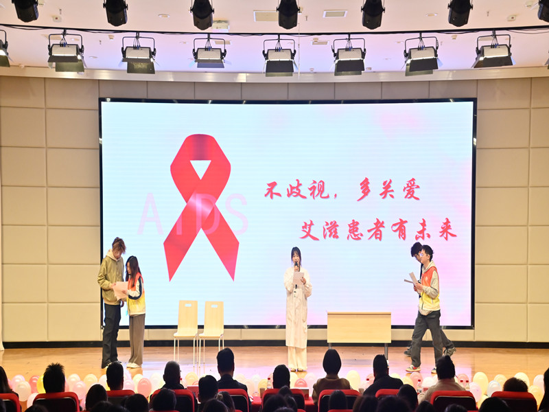 11月28日,德阳市人民医院团委、德阳市艾滋病防治管理办公室携手“曙光行动”志愿服务队与学校团委在龑江C区报告厅联合举办了“‘艾’在阳光下,以爱愈‘艾’”为主题的情景剧竞演、防艾知识抢答赛和手绘画竞赛展等系列活动。