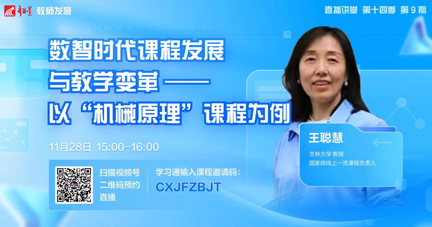 在直播课堂中,王聪慧首先介绍了数智时代对人才核心素养的新需求,以及这些需求如何驱使高校教师思考学校教育目标和课程教学目标的转变。她指出,在数智时代背景下,教师需要不断更新教学理念,创新教学方法,以适应新时代的人才培养需求。随后,王教授以“机械原理”课程为例,详细阐述了数智时代课程建设的变革与思考。她分享了吉林大学在“机械原理”课程中的教学实践和创新成果,包括如何运用数智技术提升教学效果,如何构建能力型课程体系,以及如何通过“三化技术”(即课程内容的模块化、教学方法的多样化、教学评价的多元化)助力能力型课程建设。
