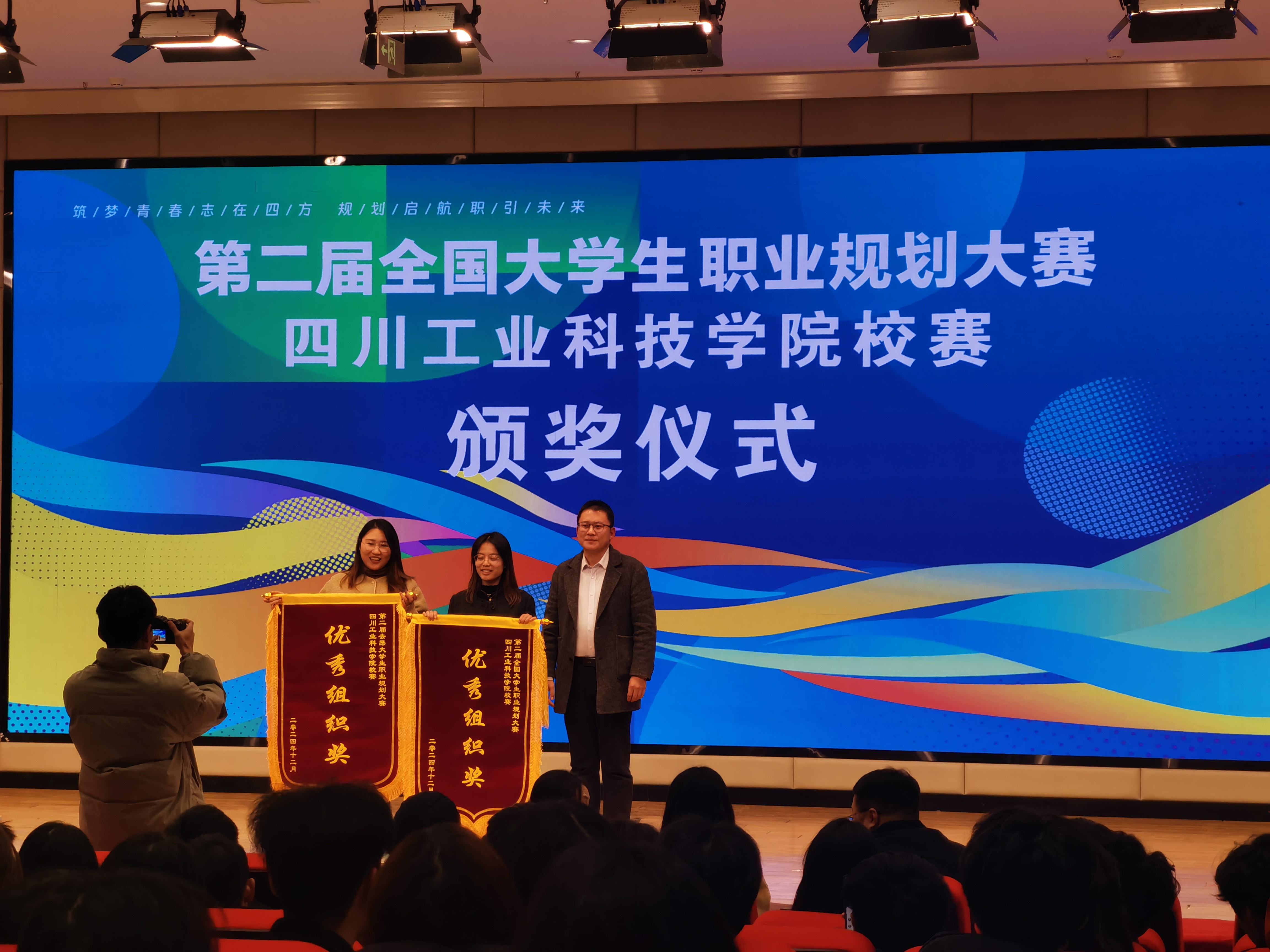 12月3日,第二届全国大学生职业规划大赛(校赛)在龑江C区报告厅圆满落幕。经济管理学院学子凭借出色的表现,荣获个人一枚银奖、一枚铜奖、两枚优秀奖,学院荣获最佳组织奖。