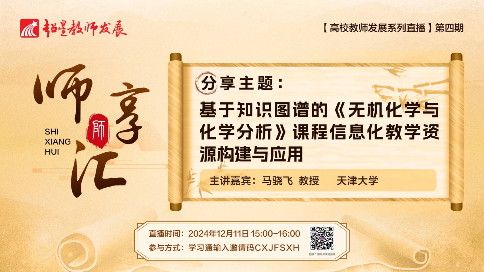 12月11日下午,教务处教师发展中心组织全校无课教师参加线上直播培训。此次培训邀请了天津大学马骁飞教授,就“基于知识图谱的《无机化学与化学分析》课程信息化教学资源构建与应用”这一主题进行了深入分享。