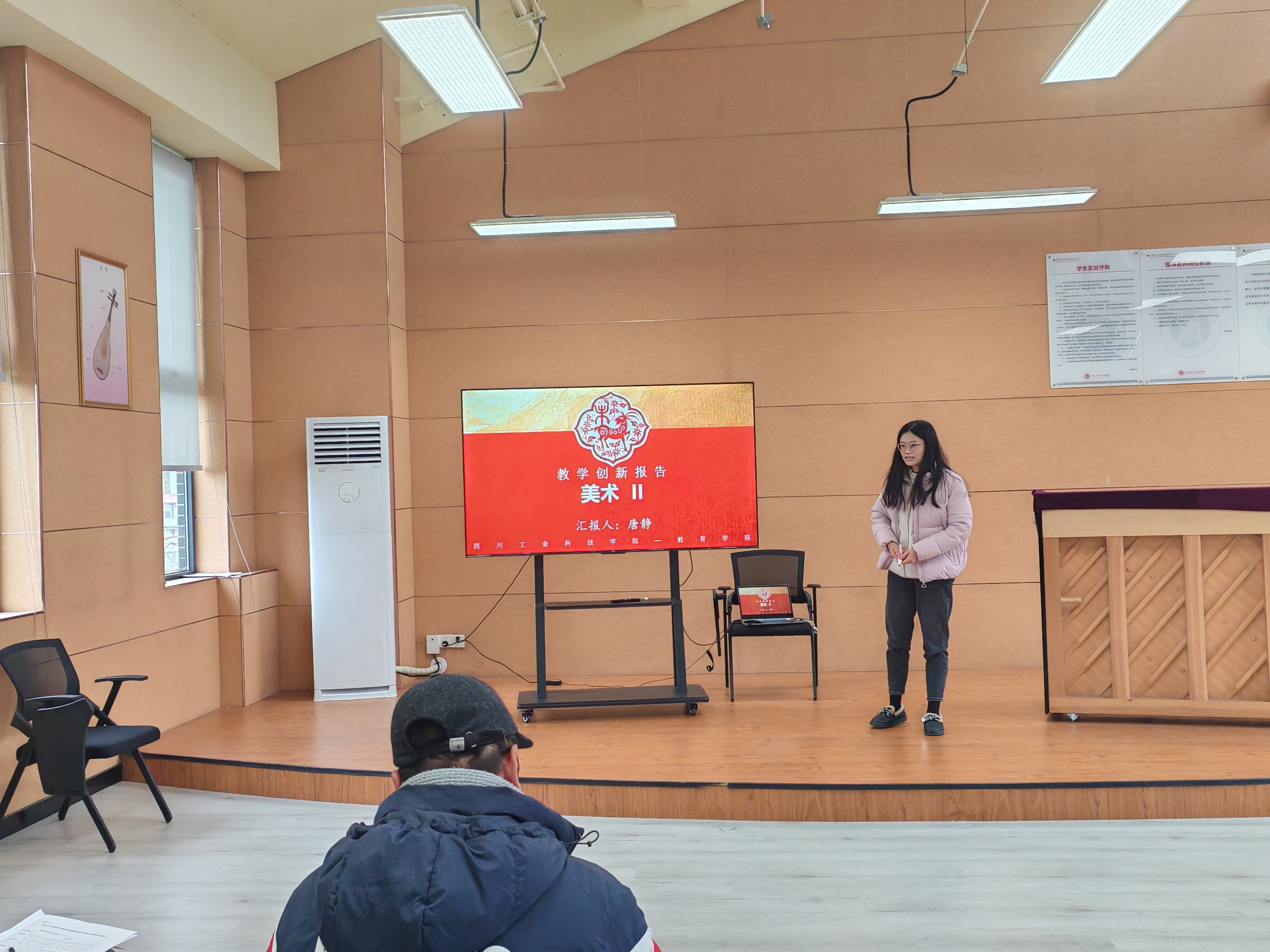第五位参赛选手唐静从教学分析、教学设计、创新成果三个角度汇报了她对于《美术Ⅱ》课程的教学创新设计,紧抓教学内容不够先进、学生高阶能力不足等课程痛点,借助AI绘画等工具引入技术融合,积极组织学生参加实践活动和比赛,并获得不错的成绩。