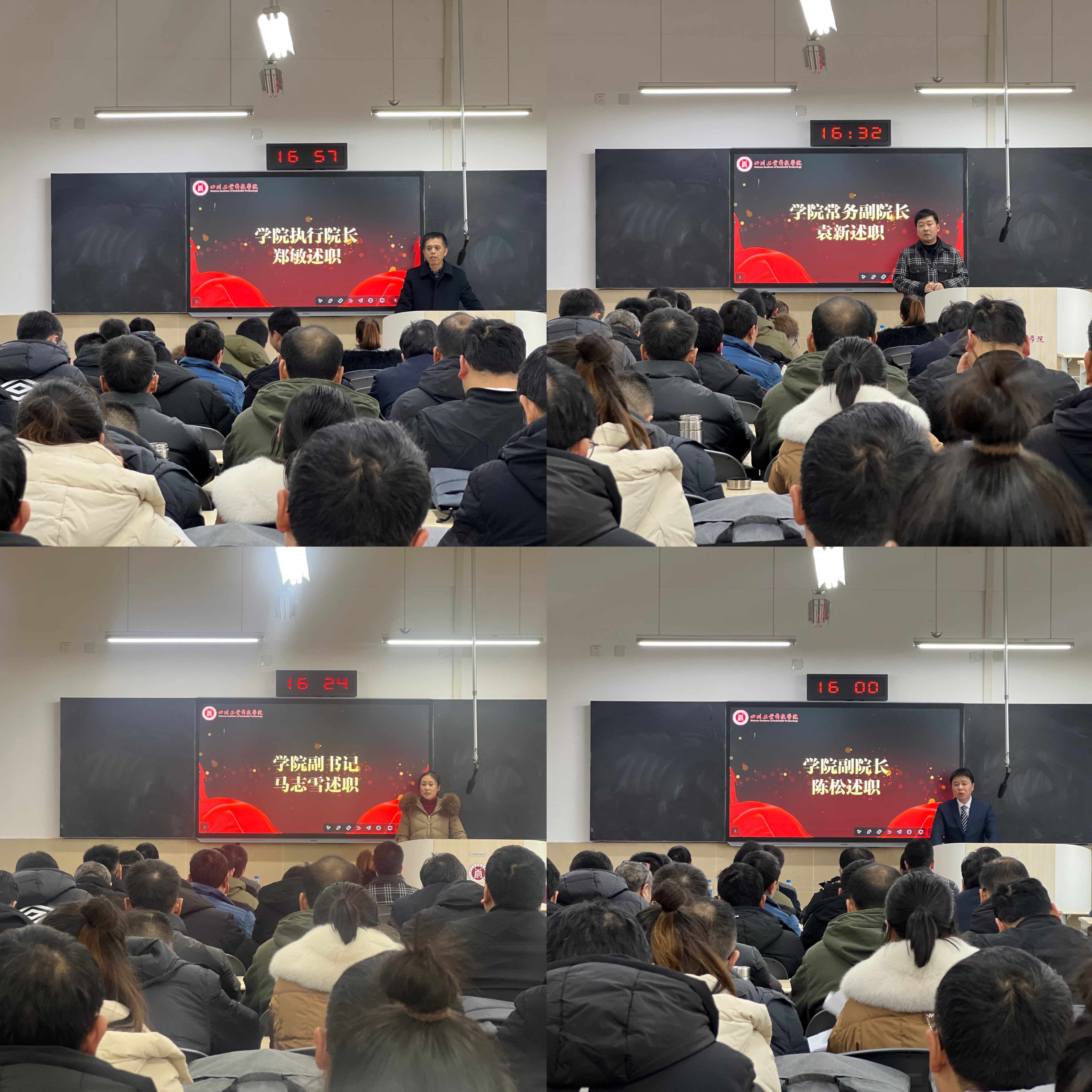 12月27日下午,智能制造与车辆工程学院2024年度总结暨处级干部述职大会在龑江学村D305顺利召开。学校副校长陈堂,教务处代表施杨、人事处代表张菁,学院行政领导以及全体教职工参加会议。会议由常务副院长袁新主持。