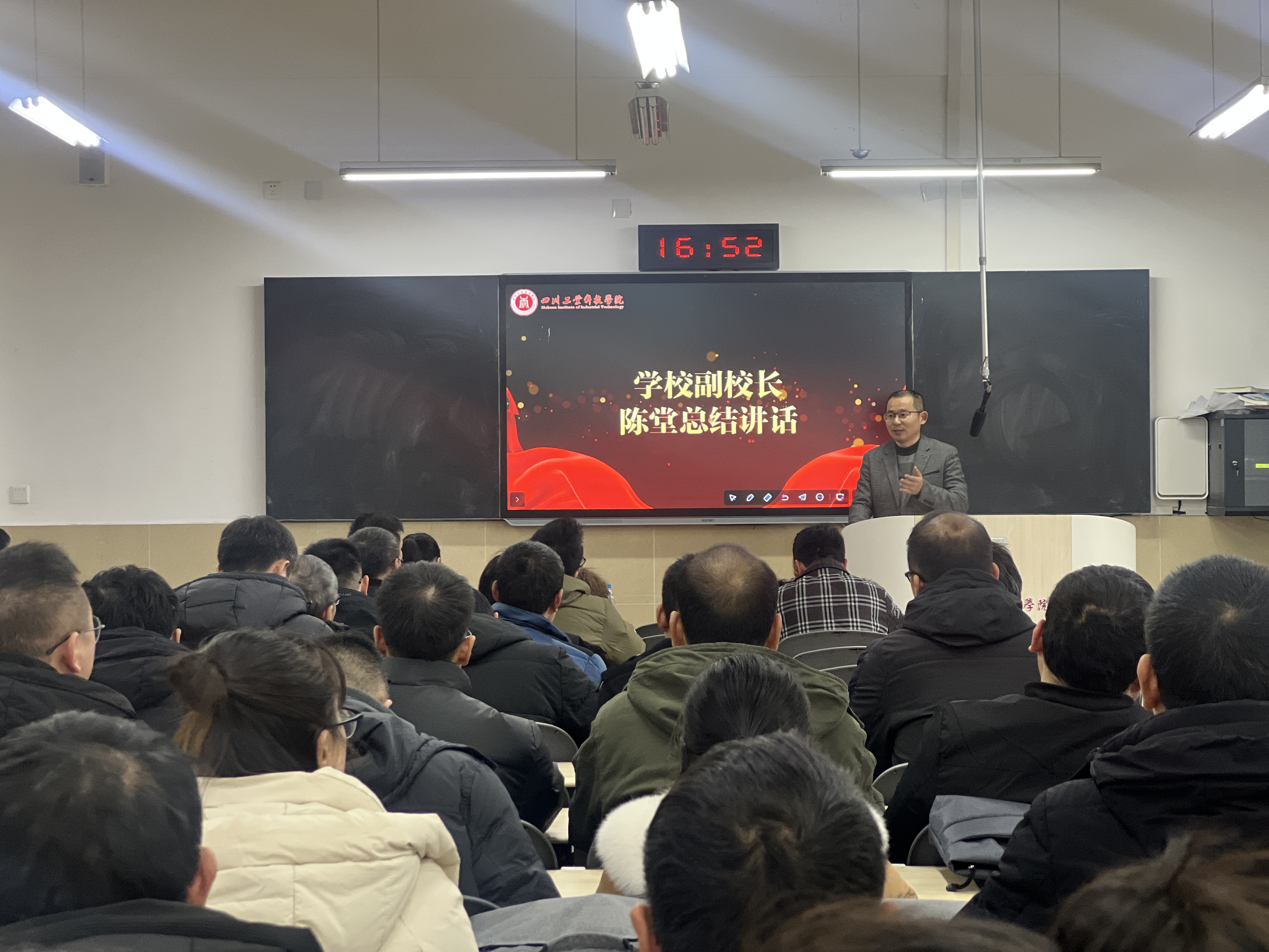 大会最后,陈堂发表了总结讲话。他首先对学院在2024年度学科建设、内涵发展等方面取得的显著成就表示了肯定,并对学院未来的发展寄予了厚望。他希望全体教师进一步深化对现代化教育理念的理解,并在教学实践中积极落实OBE教学理念。他还提出,学院需进一步优化专业布局,以增强内涵建设的成效。最后,他鼓励大家提升教学技能,团结协作,共同为学院争取更多的荣誉和成就。
