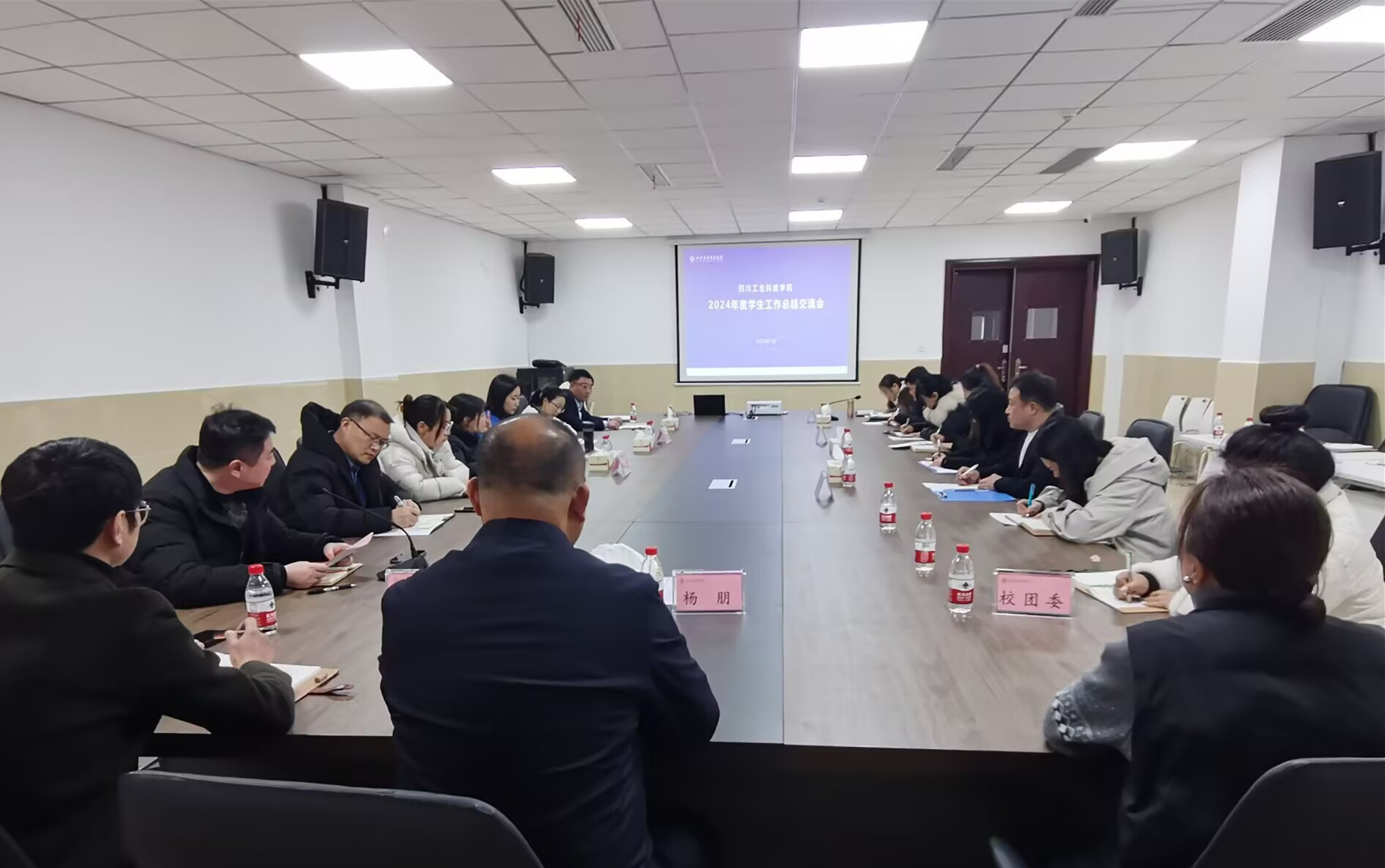1月2日,学生处在龑江E516会议室组织召开了2024年度学生工作总结交流会。学校党委副书记杨朋出席会议,各二级学院书记、团总支书记、学工办主任及学工部教师参加会议。会议由学生处副处长蔡明主持。