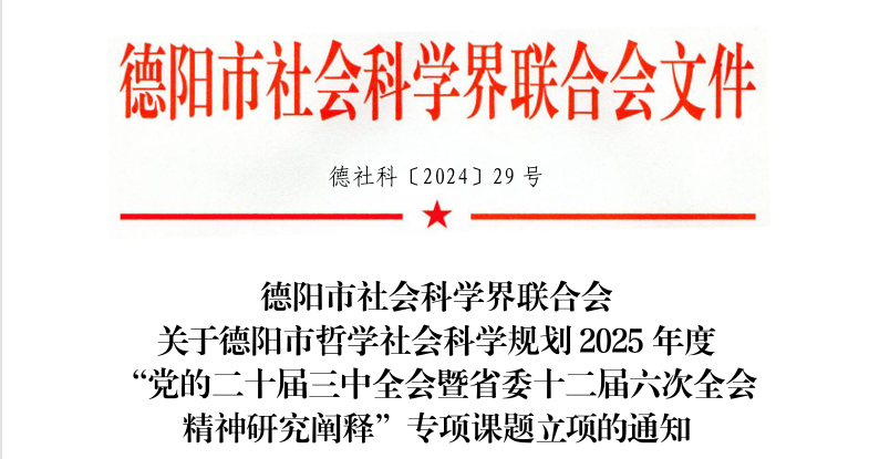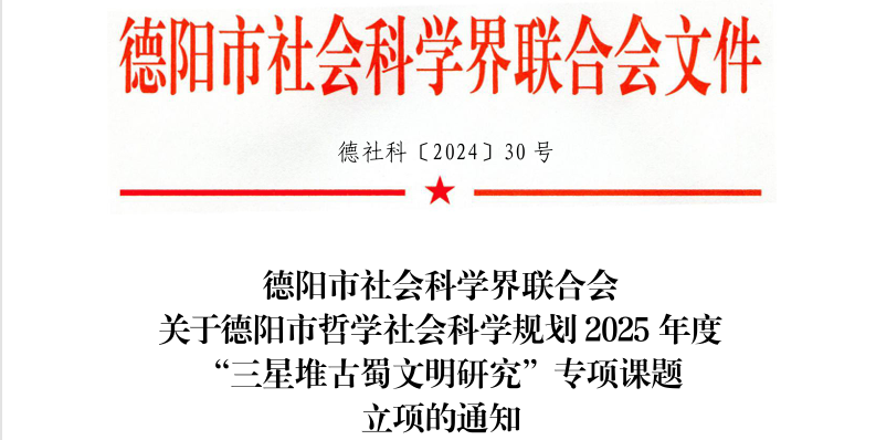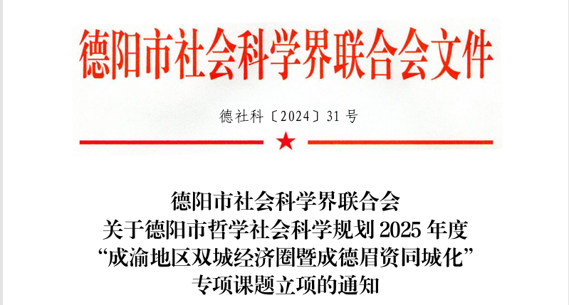 近日,德阳市社会科学界联合会公布了德阳市哲学社会科学规划2025年度“成渝地区双城经济圈暨成德眉资同城化”“三星堆古蜀文明研究”“党的二十届三中全会暨省委十二届六次全会精神研究阐释”专项课题立项名单。学校赵小英等8名教师主持的项目喜获立项。