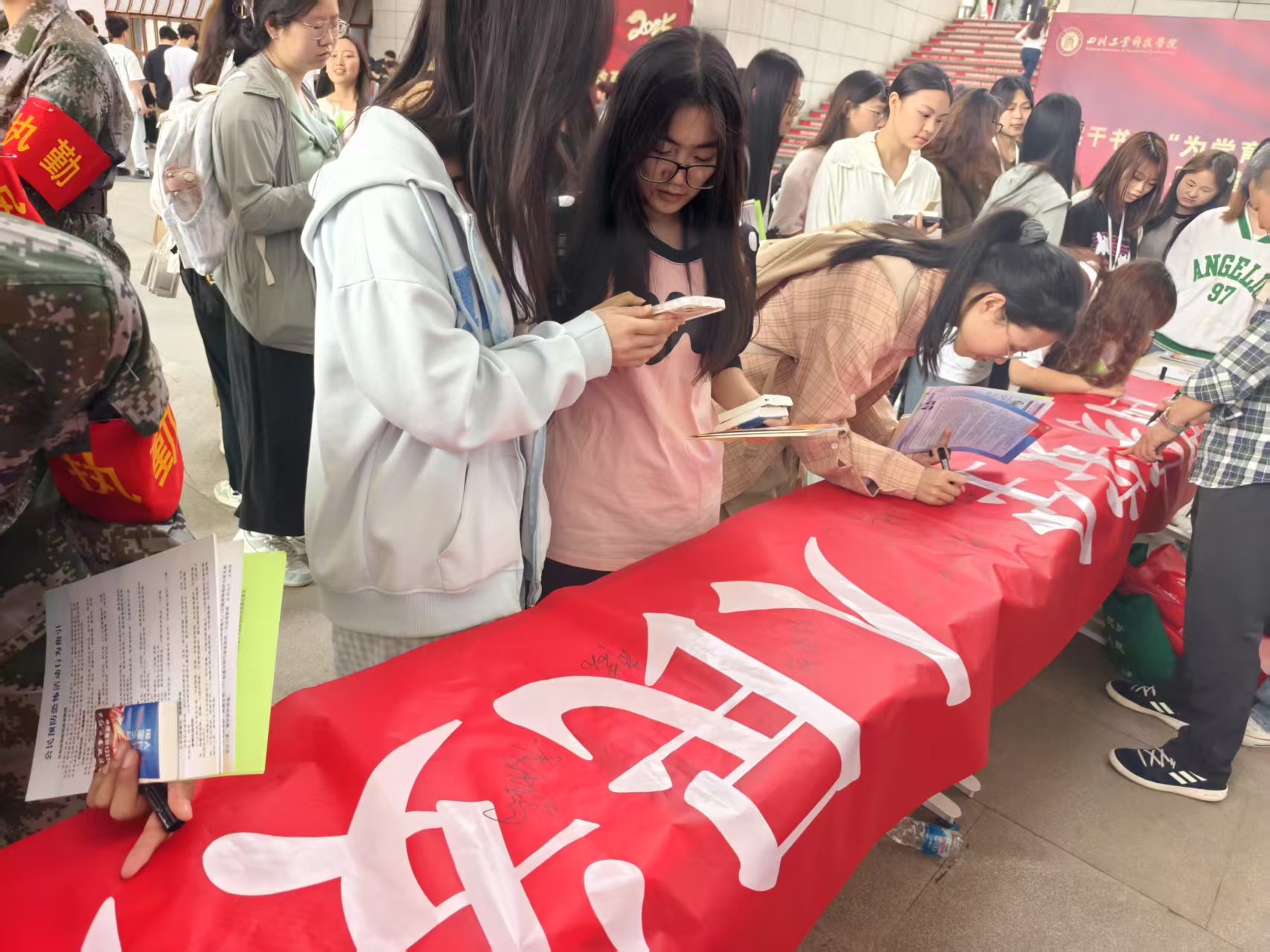 活动现场通过悬挂宣传横幅、摆放展板、发放宣传资料等形式,向师生普及国家安全知识。王强警官与志愿者耐心解答师生疑问,现场互动氛围热烈。活动最后,师生们积极参与签名承诺。