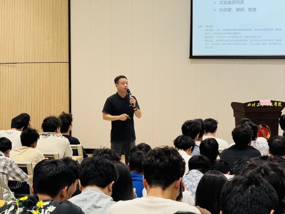 4月23日,电子信息与计算机工程学院在学校B区学术报告厅举办《职业盲盒时代:解码你的可能性》职业生涯规划讲座。本次讲座特邀省级职业指导专家蹇欣洲主讲,学院副院长宋彦良出席并主持,2022级全体学生参加。