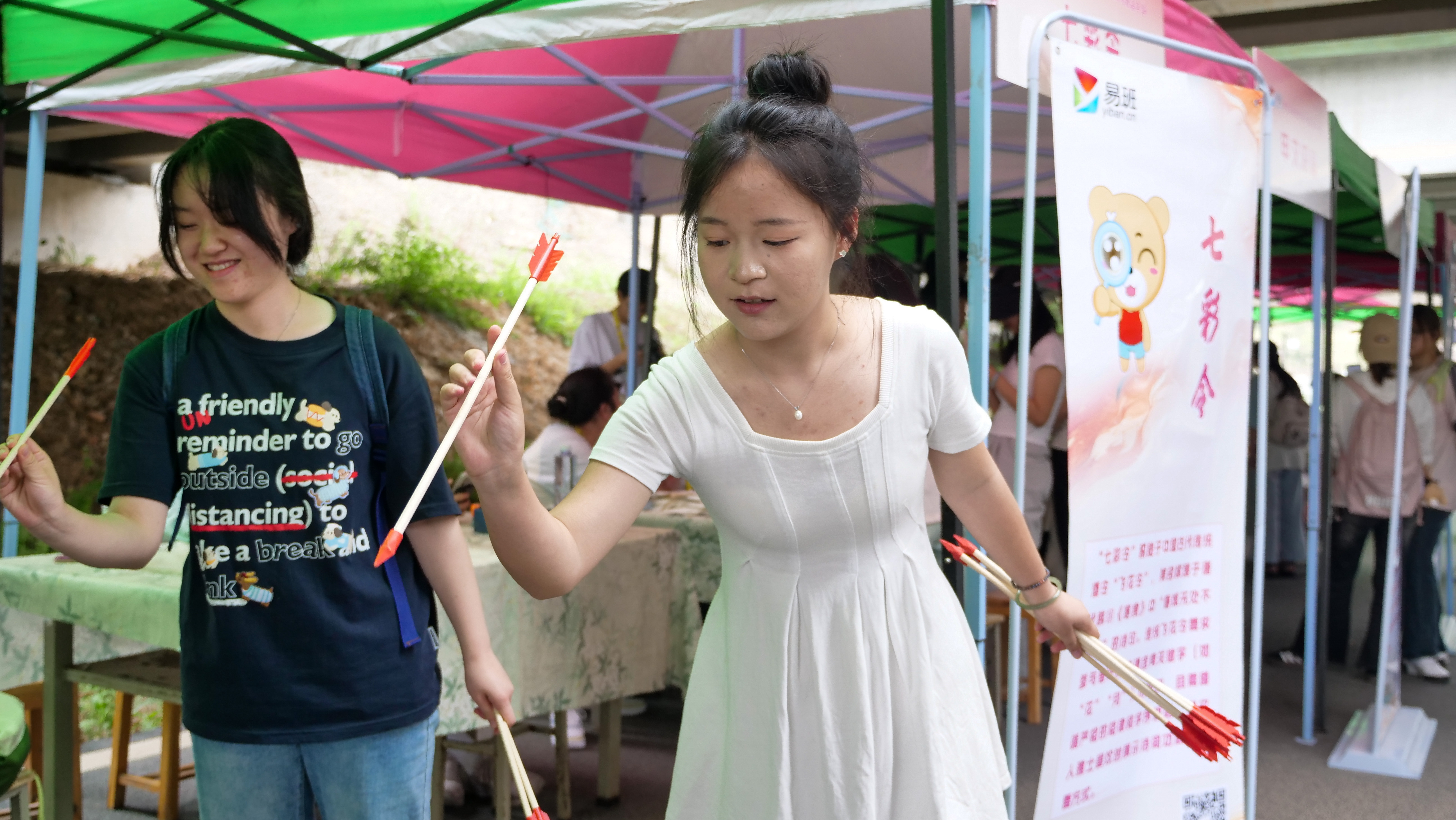 嘉年华期间,活动内容设计精妙,单人挑战与团队协作相得益彰,共同构建了一场文化与欢乐交织的盛宴。单人活动中,九连环扣、投壶纳福等传统游戏巧妙融合了智慧与趣味,让参与者在挑战中领略到中华文化的博大精深;七彩令、甲文识篆等项目则通过诗词接龙与古文字辨识,让传统文化在轻松愉快的氛围中得以传承与弘扬。团体活动区域同样亮点纷呈,艺韵薪传项目通过接力投针和踢毽子,不仅考验了团队成员之间的默契与协作能力,更在欢声笑语中增进了彼此间的友谊、此外,活动还增设了非遗DIY活动区,为参与者提供了丰富的非遗项目体验机会,让参与者在亲手制作中感受到了传统文化的独特韵味与深厚底蕴。