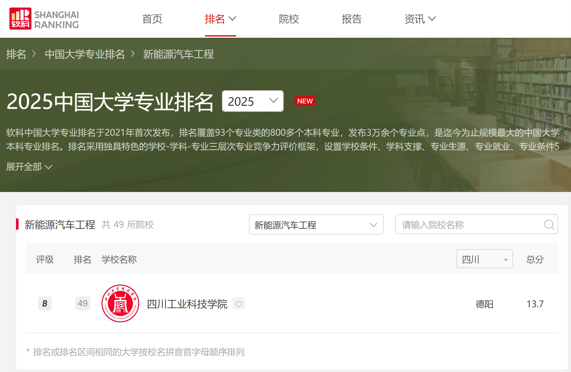 近年来,学院紧密围绕“双一流贡嘎计划”建设目标,持续加大投入,办学条件与内涵建设水平显著提升。此次机器人工程与新能源汽车工程专业在权威的软科排名中双双上榜,充分彰显了学院在智能制造与新能源汽车新兴工程领域的专业实力和人才培养质量获得社会高度认可,也是“贡嘎计划”引领学科专业高质量发展取得的重要标志性成果。