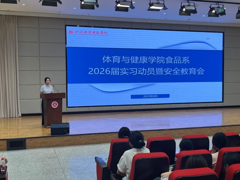 8月4日上午,体育与健康学院食品与酿酒工程系在龑江校区C区报告厅召开2026届实习就业动员暨安全教育会。学校执行校长张仁志主讲,学院党总支副书记李双晶主持会议,食品与酿酒工程系2026届全体毕业生参加。
