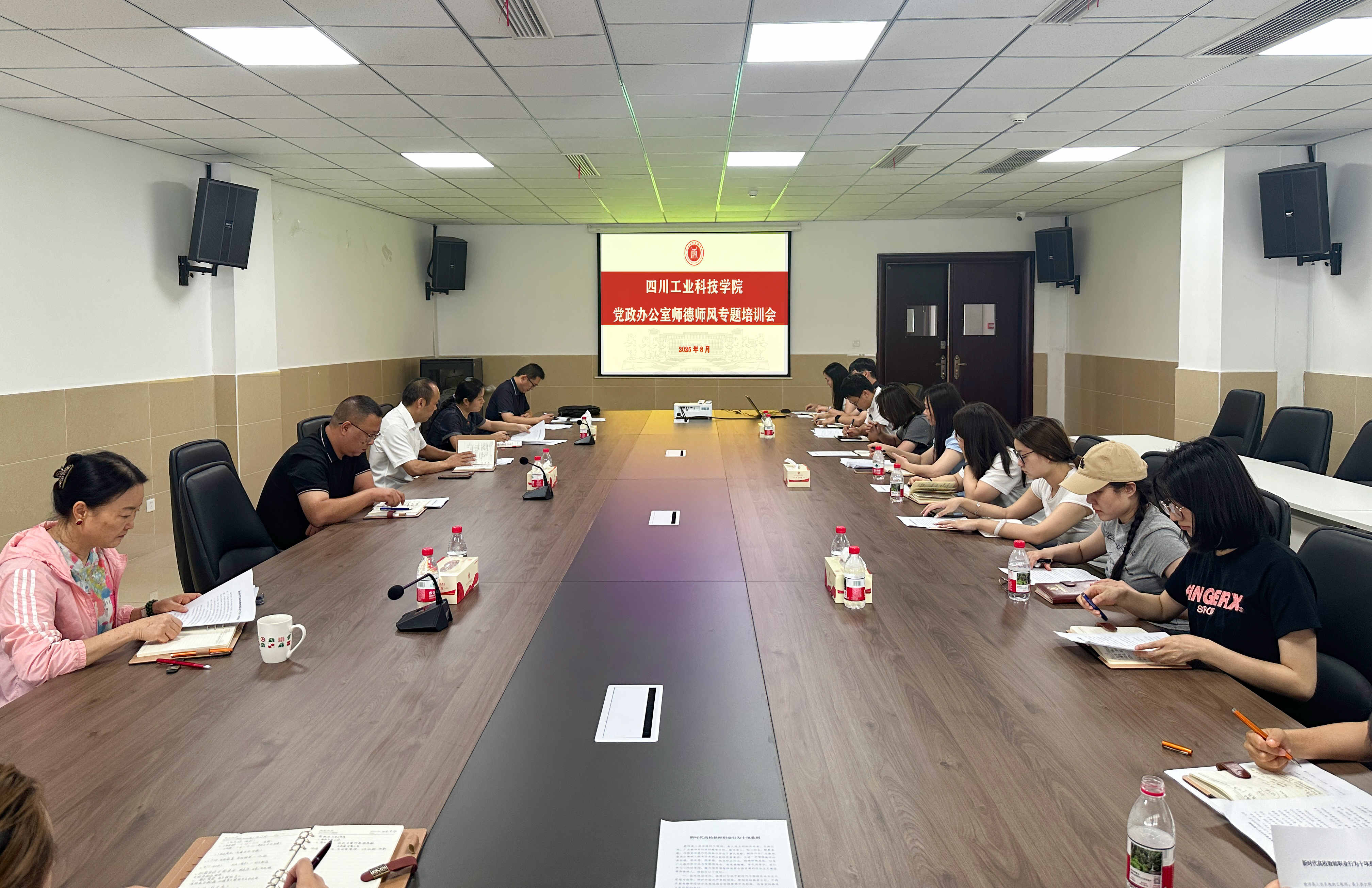 在师德师风专题培训环节,与会人员共同学习了《新时代高校教师职业行为十项准则》《四川工业科技学院教职工行政处分规定》及《四川工业科技学院教职工行为规范》等重要文件。通过系统学习,大家进一步增强了纪律意识、责任意识和服务意识,深刻认识到师德师风建设在管理服务岗位中的重要意义。