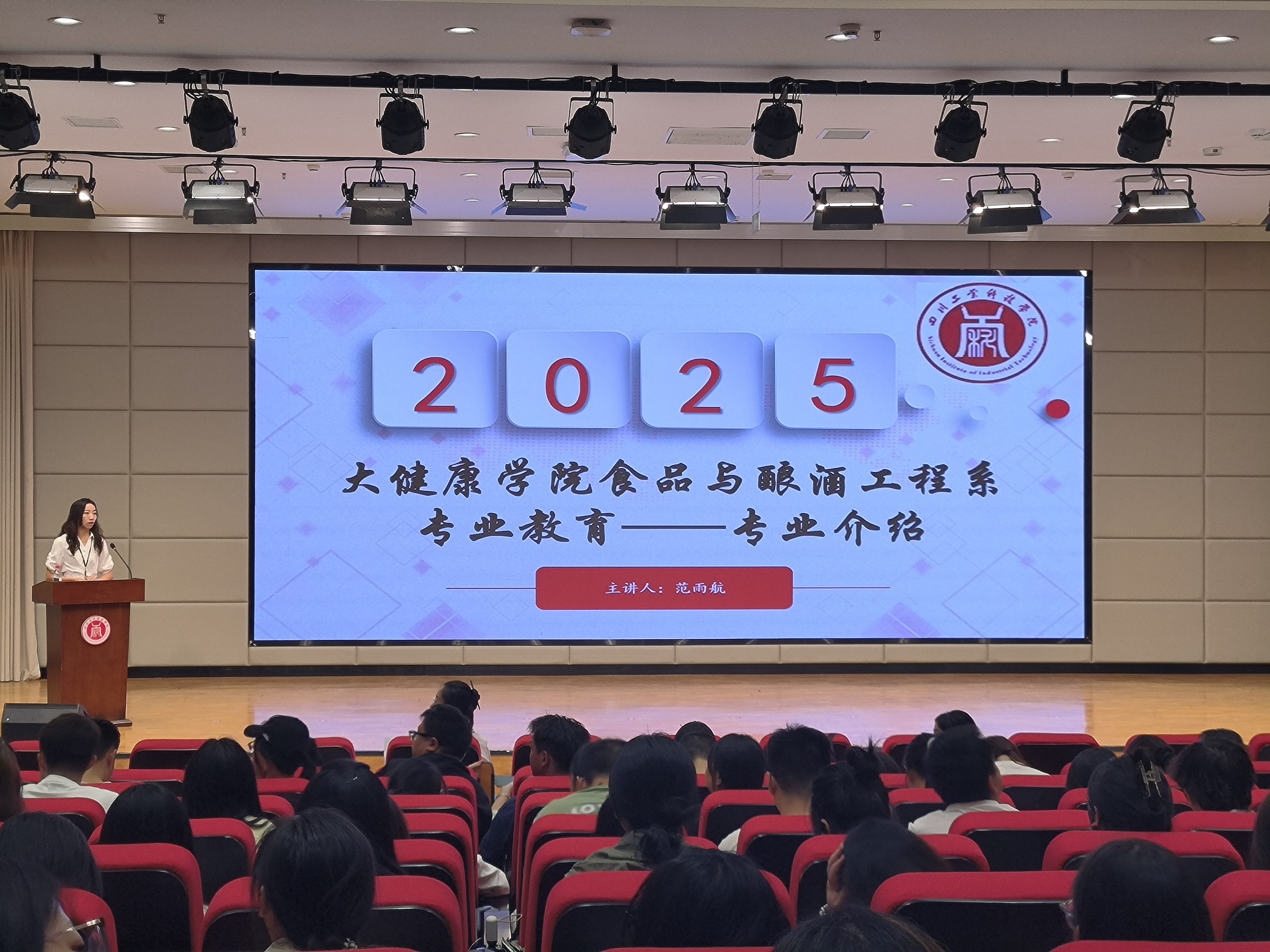 8月25日上午,大健康学院食品与酿酒工程系于龑江C区报告厅召开专升本新生专业教育会。会议由食品与酿酒工程系副主任王艺与综合办副主任范雨航主讲,全体专升本新生参与。
