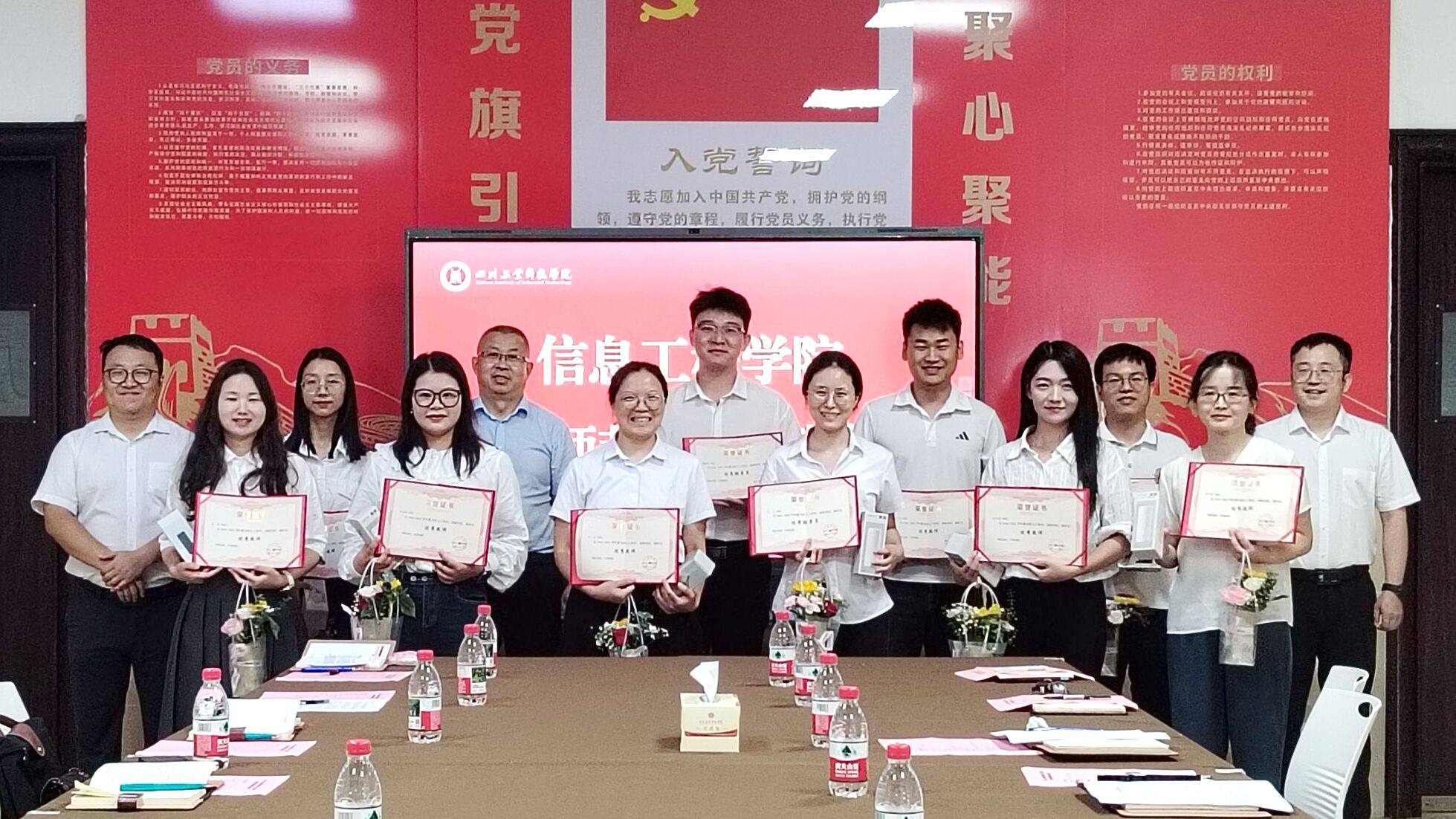 黄斯欣为受表彰教师颁发荣誉证书和纪念品,并合影留念。获奖教师代表张晋雯、周海峰等老师在会上交流发言,分享了他们在教育教学、科研创新、学生培养、产教融合、个人成长等方面的实践体会和今后努力工作的决心,表达了对教师职业的崇高理解。与会教师也纷纷结合各自实际,共话节日的收获与感悟,一致表示将珍惜荣誉、脚踏实地,为党和国家的教育事业持续奉献。