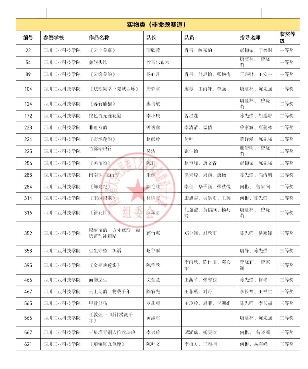 近日,2025年(第三届)四川省大学生民族工艺美术创意设计大赛评审工作落幕。学校学子在本届大赛中表现优异,共在实物赛道斩获34项等级奖。其中,文化产品创意设计微专业首届毕业生作品表现尤为突出,共有14组作品荣获三等及以上奖项,包括一等奖1项、二等奖7项、三等奖6项,充分展现了该微专业在人才培养与创意实践方面的显著成效。