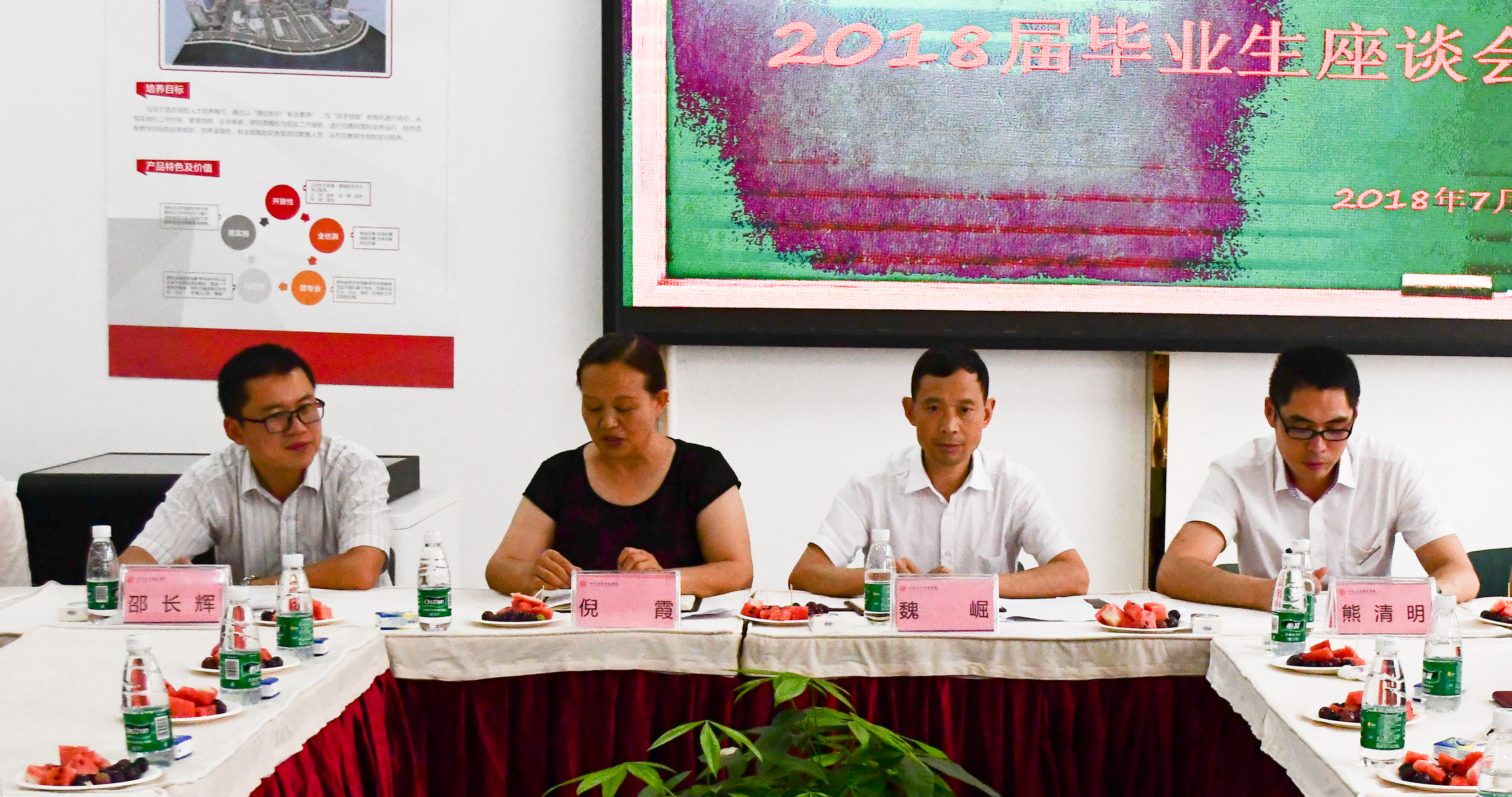 7月8日下午2:30,工商管理学院2018届毕业生座谈会在ARE实训室举行。学校党委书记魏崛、副校长倪霞、工商管理学院副书记邵长辉、副院长熊清明出席了本次座谈会,2018届辅导员及30余名毕业生代表参加了座谈会,会议由熊清明主持。