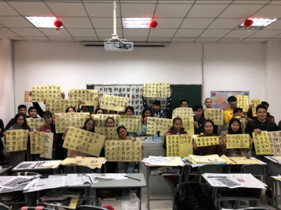 11月30日上午,国际学院在留学生教室举行了一场中国书法交流活动。参加本次交流活动的有我校来自老挝、泰国、瑞士、葡萄牙的外籍留学生以及书法协会的中国同学,活动特别邀请了四川省书法家协会会员钟伟老师、德阳市作家协会副主席姜国栋老师作为主讲嘉宾。