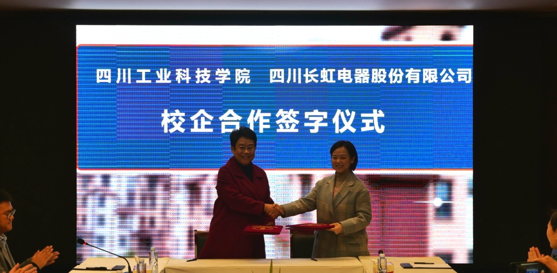 1月3日上午,四川长虹电器股份有限公司制造与供应链管理中心经理王波一行4人到访我校,并与学校签订了校企合作框架协议。学校理事会理事、理事会办公室主任何义兴、副校长郭桂萍、电子信息与计算机工程学院院长傅成华等出席了签字仪式。