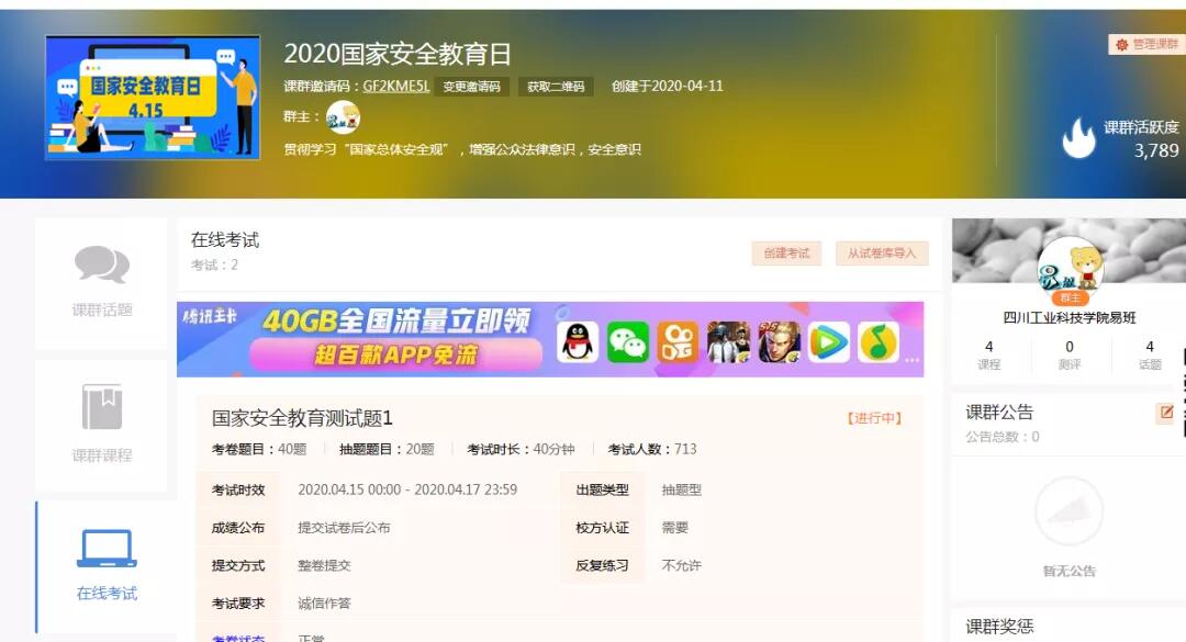 为进一步提高全校师生国家安全意识,增强国家安全责任,在第5个“全民国家安全教育日”来临之际,四川工业科技学院精心组织,积极行动,采取网络收看、知识竞赛和分享学习心得等多种形式,开展国家安全教育活动,让广大师生在教育活动中普遍掌握国家安全知识,提升国家安全意识,自觉维护国家安全。