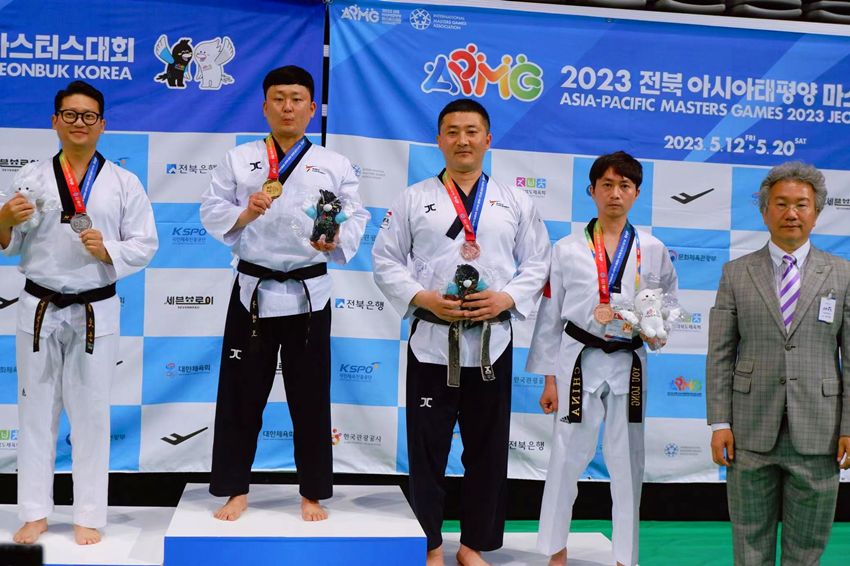 2023全北亚太地区大师运动会日前于韩国全罗北道全州市闭幕,中国队选手在历时九天的比赛中摘下41枚金牌、121枚奖牌。其中,学校体育与健康学院游拢老师力克劲敌,在跆拳道项目上勇夺1金1银1铜的好成绩,让中国国旗飘扬在国际赛事舞台上。