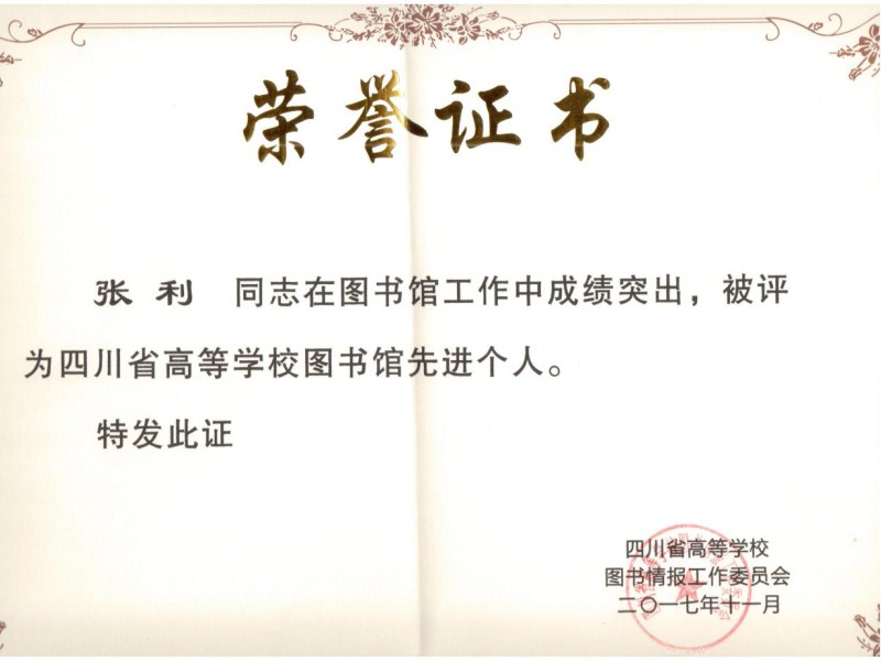在大会“四川省高校先进图书馆和先进个人”表彰和颁奖环节,我校图书馆工作人员张利荣获“个人先进”荣誉称号。近几年来,图书馆在各级领导的关心支持下,在全民阅读推广、信息服务等方面取得了较好成效,师生参与度高,是校园文化建设的重要组成部分。在今后的工作中,图书馆将不断加强自身软硬件建设,逐步实现向网络化、数字化、信息化的转化,积极探索智慧型图书馆的建设,为学校的教学科研工作和人才培养提供服务。