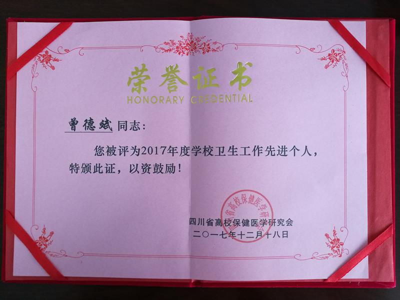 在大会“四川省学校卫生工作先进集体和先进个人”表彰和颁奖环节,曾德斌同志被授予2017年度学校卫生工作先进个人荣誉。2017年后勤保障服务工作在大家的努力下取得不断的进步,得到学校及各级单位的好评和认可。曾处长表示,他一定戒骄戒躁,继续做好后勤保障工作,为全校师生员工服好务。以党的“十九大”和全国高校后勤改革会议精神为指导,坚持后勤改革方向,进一步完善基础管理工作,为我校后勤现代化建设做出应有的贡献。