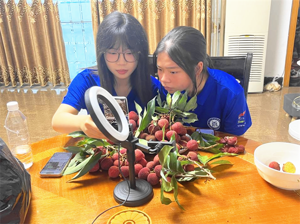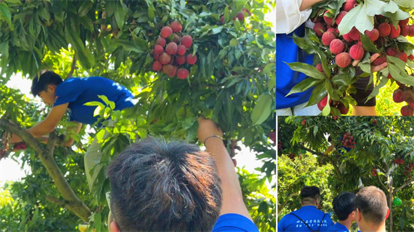 一堂良畴沃野中的劳育课程。学校团委和体育与健康学院社会实践团队带着滚烫的热情前往德阳市罗江区太阳湾和泸州市合江县真龙镇开展当地农产品直播带货助农志愿服务,他们通过走访学习、理论宣讲、劳育+美育、服务村民等方式,积极参与暑期“三下乡”社会实践活动。在助农直播间里,志愿者们将直播搬到翠冠梨和荔枝的采摘现场,利用自己的专业优势,围绕罗江翠冠梨,合江柚子、荔枝等特色农产品,详细为观众介绍当地特色,帮助当地农户进行农产品宣传推广。志愿者们用生动的语言、幽默的互动,借助历史来源的小故事讲解,广大网友热情一路高涨,直播间热度持续攀升。实践团队成员表示,通过此次助农直播,希望能够提高罗江翠冠梨和合江荔枝的知名度,助力优质农产品火爆“出圈”。