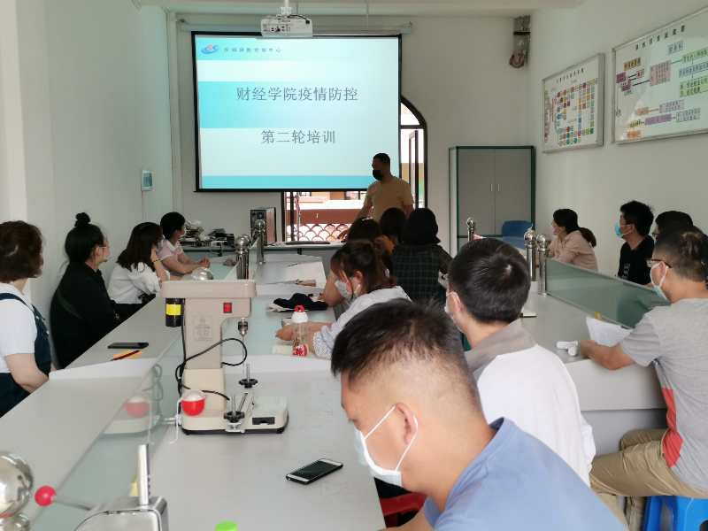 5月11日下午,财经学院副书记杨永岗组织学院全体教师于五星广场实训室开展第二轮疫情防控培训会。