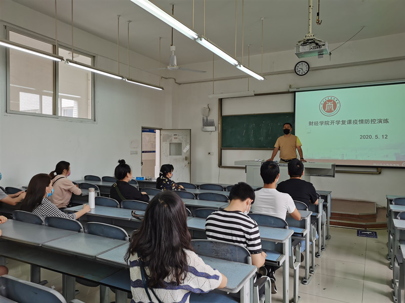 为进一步提高学校疫情防控和应对能力,切实保障教职工及学生的生命健康安全,为全面复学做好充足准备,5月12日上午,财经学院全体教师在院长卢淑梅和副书记杨永岗的带领在,在钟灵楼4楼406教师进行开学教学防控实景演练。