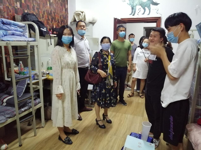 5月25日,四川工业科技学院首批学生返校,为了进一步落实疫情防控期间学生返校安全管理工作,5月26日晚,财经学院院长卢淑梅、副院长周玉笛、党支部副书记杨永岗以及部分教师和全体辅导员前往学生宿舍,慰问首批返校学生,并查看宿舍安全和卫生情况。