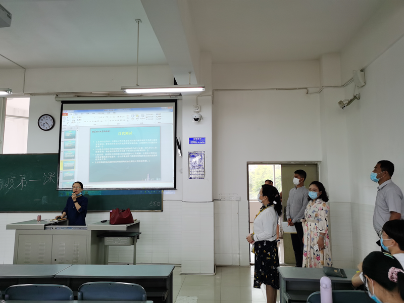 为了确保学生返校后的教学能顺利进行,严格管控学生进出教室的各个流程、提醒学生做好个人防护、上课教师注意自身防护、对于行课期间出现异常情况的处理办法等一系列工作,已在复课前进行培训和演练。通过本次上课情况检查,再次确保了学生行课的安全。