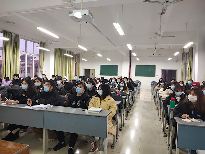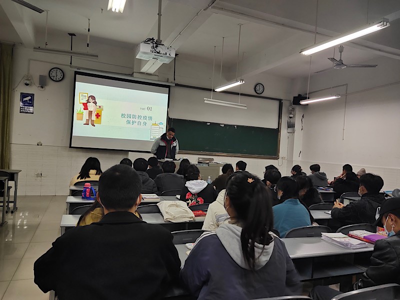 此次讲座共分为四个部分,分别为校园疫情防控、调整心态积极备考、不信谣不传谣、大学生心里健康。李鼎曌首先强调疫情防控绝不能松懈,外出戴好口罩,做好个人防护,减少外出活动,注意个人卫生。其次,临近期末,同学们需要认真复习,一心备考,争取考出令自己满意的成绩。最后李鼎曌还普及了大学生心理健康知识。