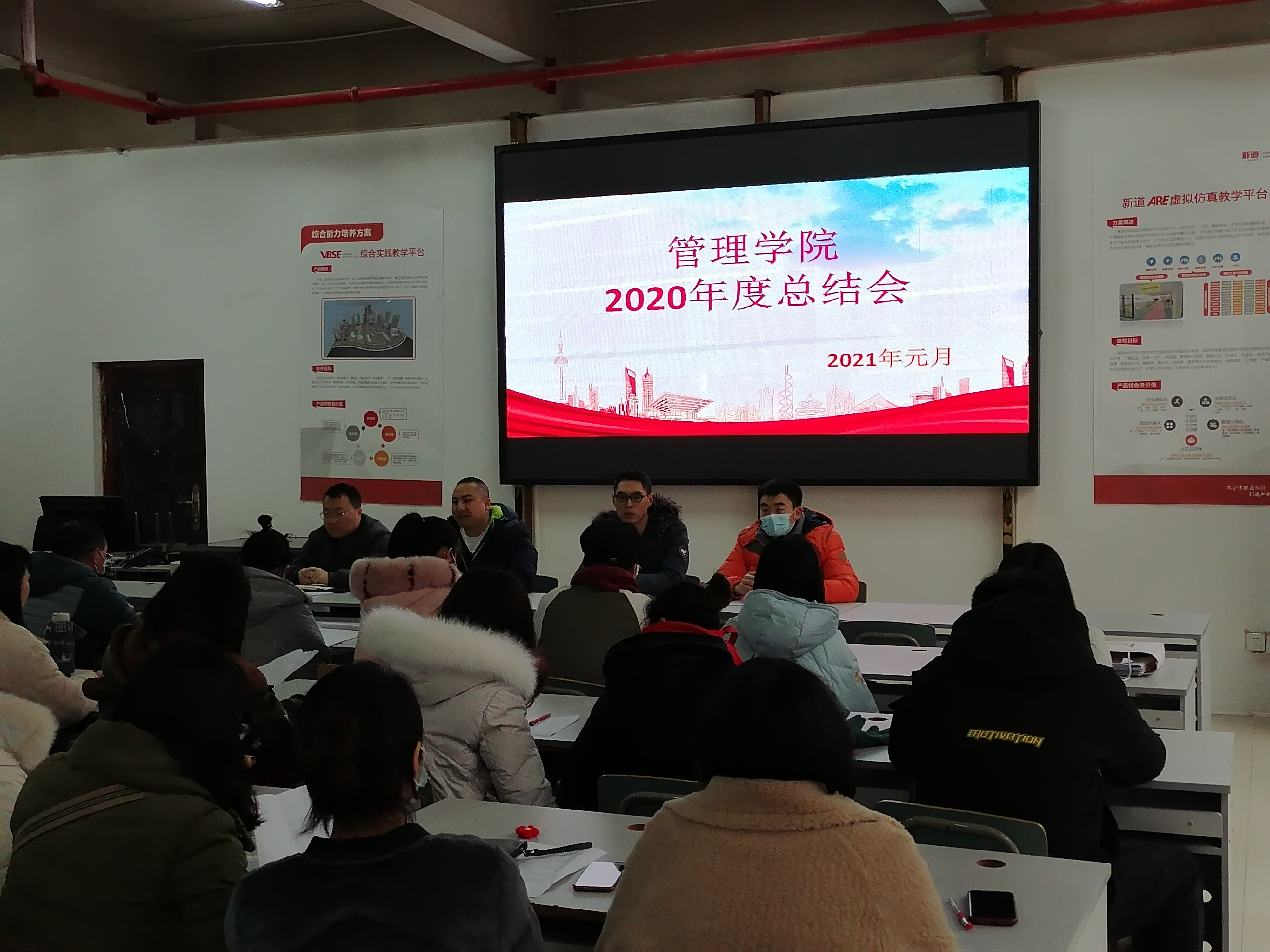 2021年1月10日,上午9点30分,管理学院全体教职工在ARE实验室召开了全院总结大会,本次会议由管理学院院长王进主持,全体教职工参与。
