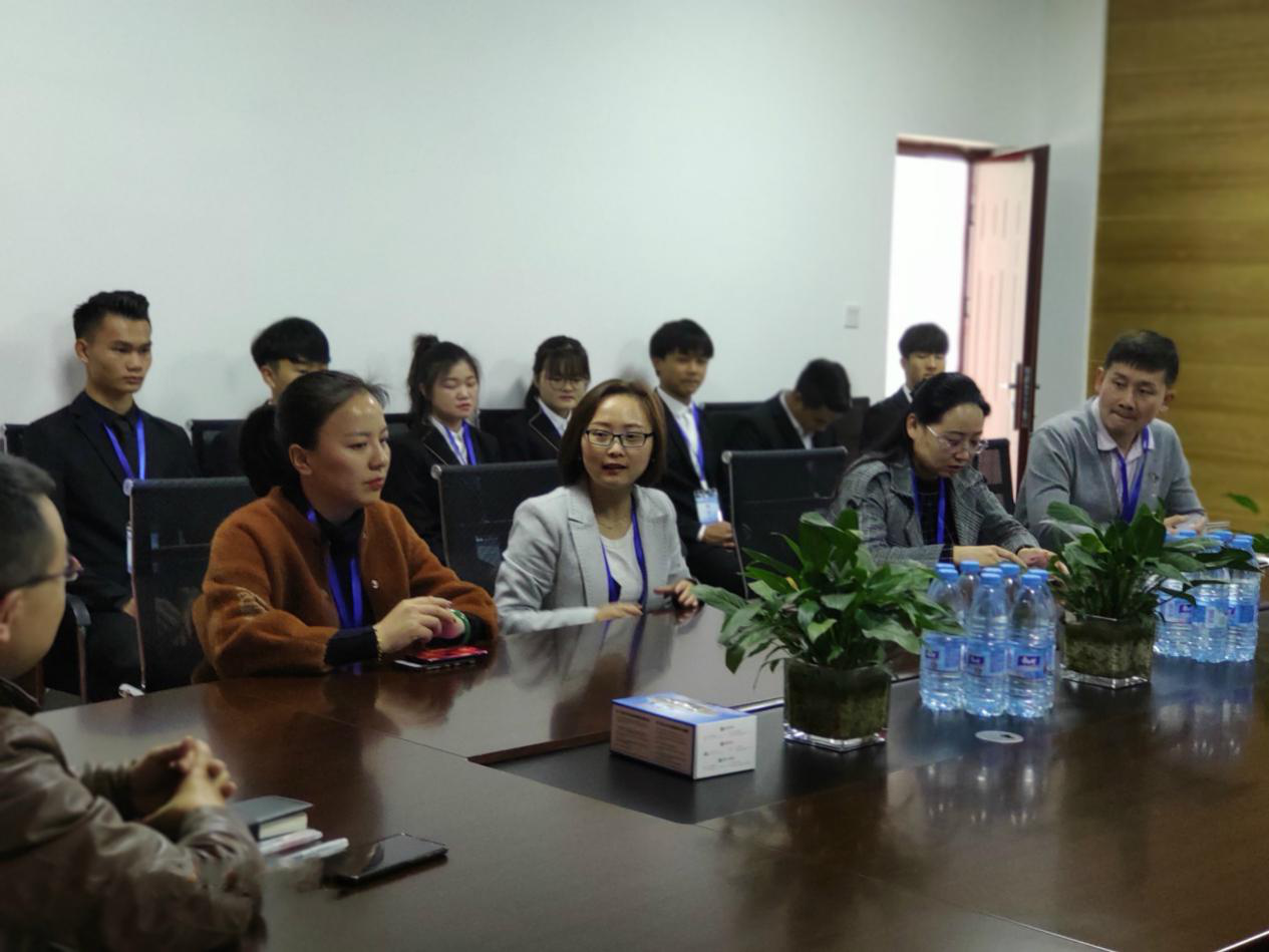 马娟花结合我校学生实际情况,就学生实习、校企合作模式与胡林等公司人员进行交流。