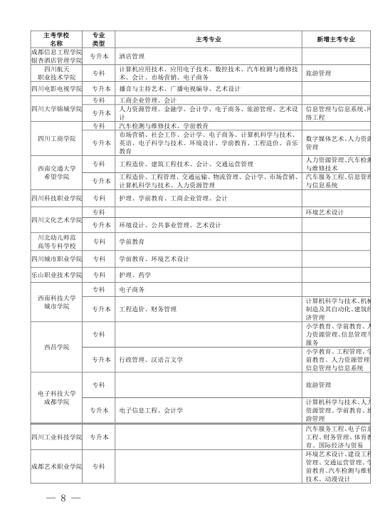 527日,省招考委、教育厅发布了《关于确定四川大学等高等院校为我省2019年高等教育自学考试应用型专业主考学校的通知》,我校被正式确定为2019年高等教育自学考试应用型专业主考学校,并新增汽车服务工程、电子信息工程、财务管理、体育教育和国际经济与贸易五个专业为专升本主考专业。