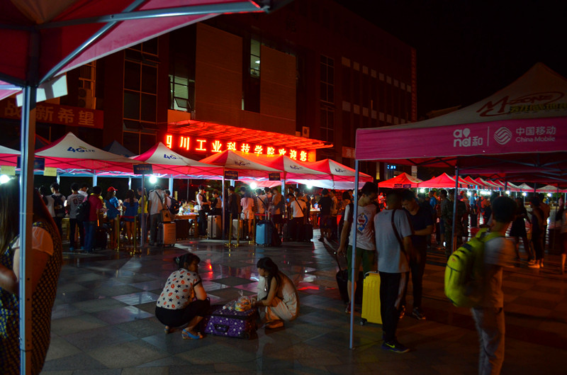 迎新现场的工作人员和学生志愿者们从早忙碌到夜深