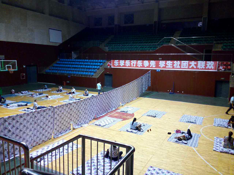 8月26日,学校2015级新生报到全面启动,校园里人潮涌动,场面火爆。很多新生都是由家长陪同来校报到,甚至一名新生几名亲属陪同,由于陪同的家长、亲属较多,学校附近的酒店、宾馆、招待所早被预定一空。据悉,城里其他酒店、宾馆也是客满为患。学校考虑到不少新生家长及亲属可能面临住宿困难,专门责成安保处、后勤处等相关职能部门在学校体育馆内分男女区域为他们打起了地铺,并提供饮用水等基本生活服务,及时地为遇到住宿困难的新生亲友们提供了一个温馨的“临时小家”。