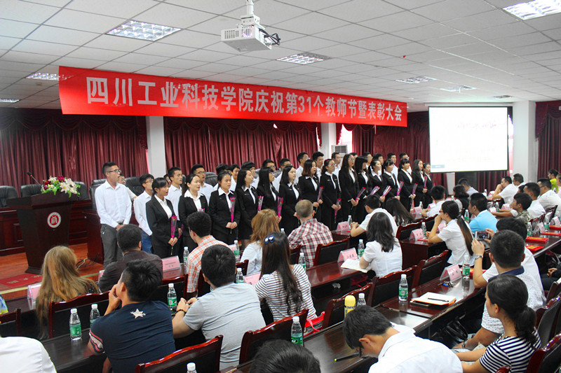 大会在庄严的国歌声中拉开序幕。学生代表首先为教师节致贺词,表达了对老师的敬爱之情和节日祝福。副校长黄斯欣宣读了教师节表彰决定。副校长郭桂萍公布了我校在2015年四川省高等职业院校信息化教学大赛获奖情况。校领导分别为获得优秀教师、优秀辅导员、优秀教育工作者、优秀指导教师、信息化教学大赛获奖者颁奖。优秀教师代表郑健作了大会发言,表达了从教感悟和对教育事业的执着追求。