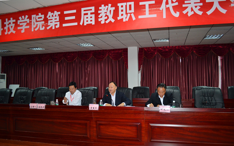 10月22日下午,我校在罗江校区图书馆408会议室召开第三届教职工代表大会第三次会议。执行校长唐健禾教授、校领导何义兴、张进砂、宋代奇、冯晓桦、黄斯欣、马小红以及150名教职工代表参加了大会。会议由校党委副书记、工会主席张进砂主持。