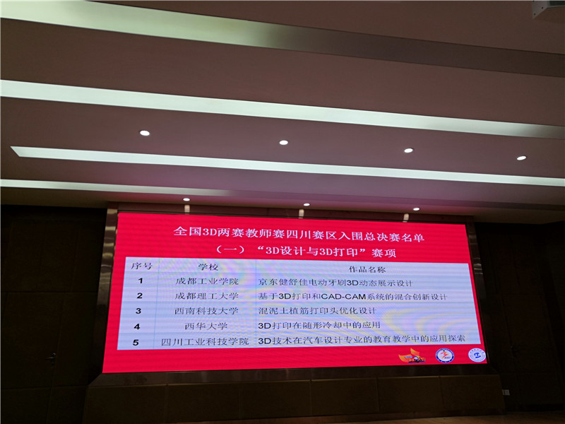 经过四个小时的现场实操、设计与打印,XYZ战队以与东道主成都理工大学以并列第一的成绩入围总决赛,并将于11月1日赴南京参加全国高校教师教学创新大赛—3D/VR/AR数字化虚拟仿真赛项全国总决赛。同时智能制造学院徐帅兵老师指导的慧创3D团队获得全国三维数字化创新设计大赛四川赛区省赛一等奖的佳绩。