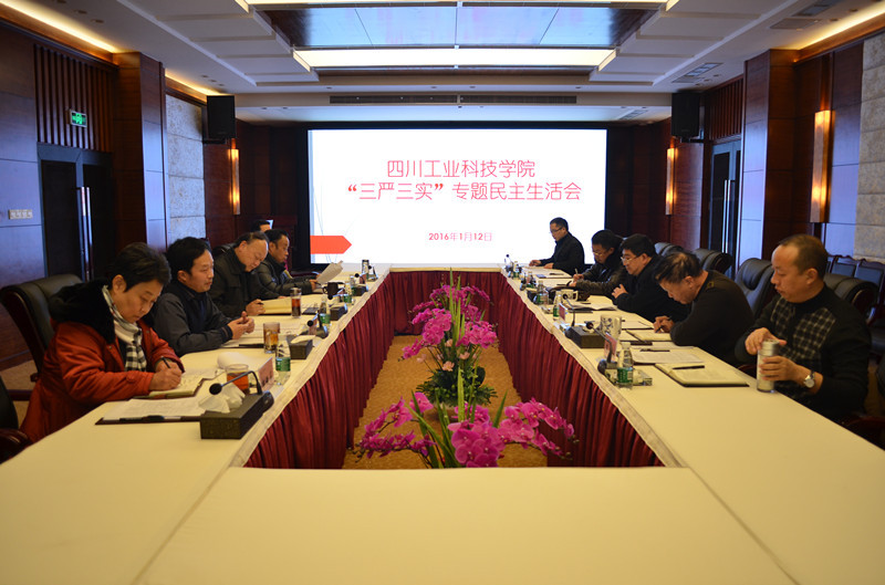 2016年1月12日,学校“三严三实”专题民主生活会在罗江校区图书馆一楼会议室召开,校党政领导班子全体成员出席会议,党政办、党委组织部负责人列席会议。会议由党委副书记张进砂主持。